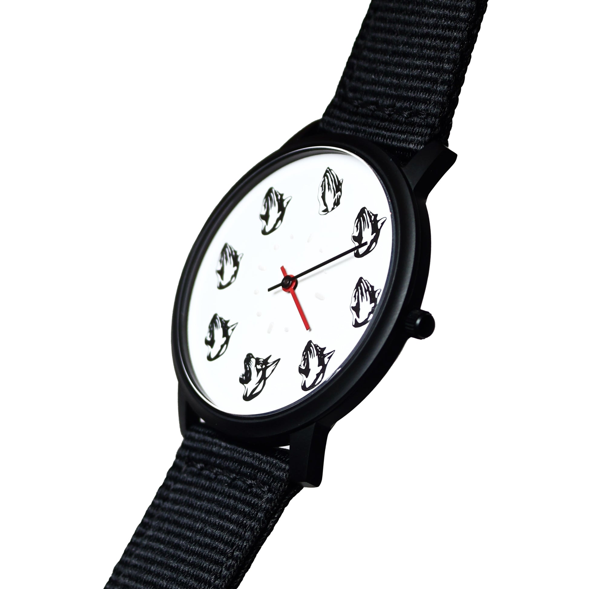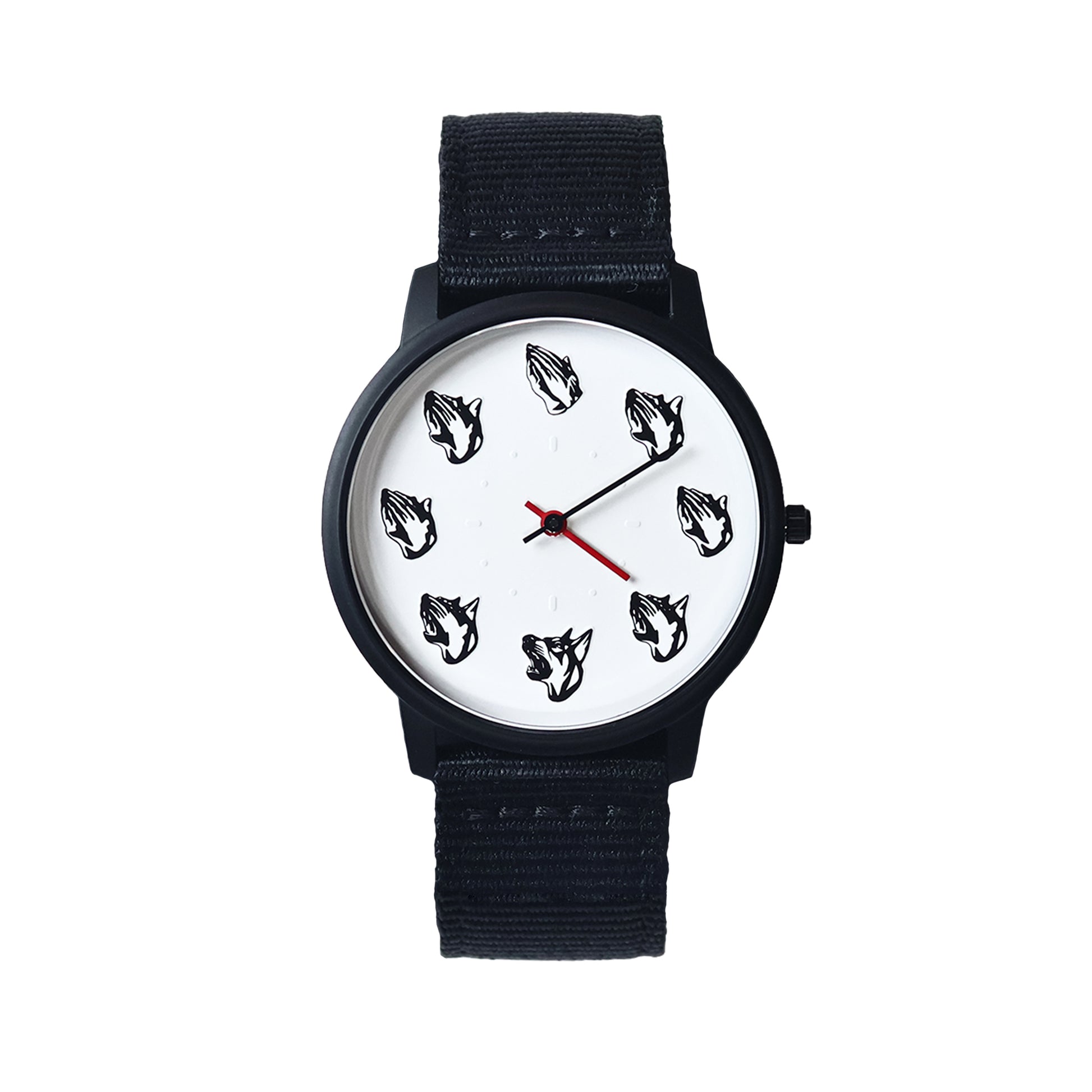 Our first release with artist Bryce Wong, this design is a wearable interpretation of one of his most famous designs. The praying hands turn into a big dog as you make your way through the day.